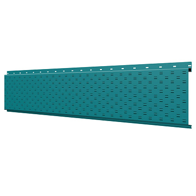 Линеарная потолочно-стеновая панель с ПЕРФОРАЦИЕЙ для вентиляции цвет RAL5021 Морская Волна применяется в качестве софитов для подшивы крыши, наружной и внутренней отделки потолков, стен, фронтонов фасада дома в Чайковском.