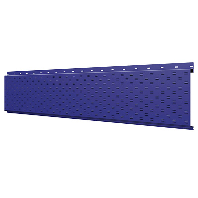 Линеарная потолочно-стеновая панель с ПЕРФОРАЦИЕЙ для вентиляции цвет RAL5002 Синий Ультрамарин применяется в качестве софитов для подшивы крыши, наружной и внутренней отделки потолков, стен, фронтонов фасада дома в Чайковском.