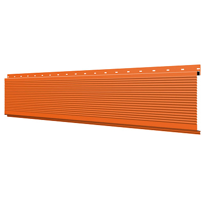 Линеарная потолочно-стеновая панель РИФЛЕНАЯ усиленная цвет RAL2004 Оранжевый Апельсин применяется в качестве софитов для подшивы крыши, наружной и внутренней отделки потолков, стен, фронтонов фасада дома в Чайковском.