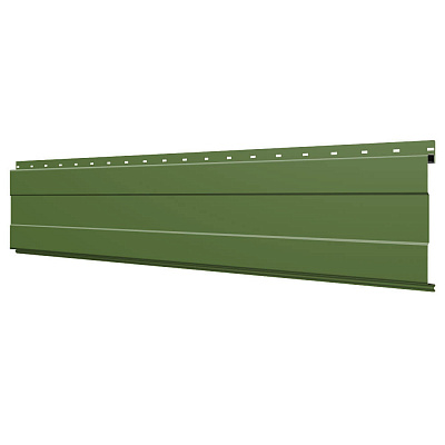 Линеарная потолочно-стеновая панель с ПОЛОСОЙ усиленная цвет RAL6002 Зеленый Лист применяется в качестве софитов для подшивы крыши, наружной и внутренней отделки потолков, стен, фронтонов фасада дома в Чайковском.