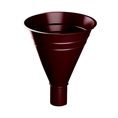 Воронка водостока d300мм водосборная на трубу d100мм RAL Р363 Вишня металлическая - для сбора воды с фальцевой кровли и некоторых сложных видов кровли вместо желобов используется водосборная воронка. Применяется на сложных кровлях, когда нет возможности организовать водосток посредством желоба.