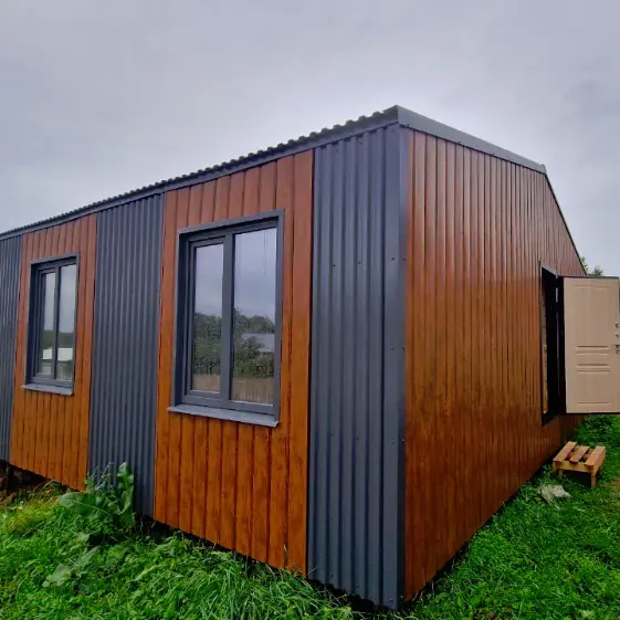 Ваш барнхаус может выглядеть именно так — брутально, стильно и современно! Металлический сайдинг Евро-Брус под брус в цвете Кедр Тёмный с 3D-покрытием SteelArt передаёт естественную фактуру дерева, а сочетание с профнастилом С-21 RAL7024 Серый графит на стенах и кровле добавляет архитектуре выразительности и надёжности. Такой фасад не только подчёркивает индивидуальность дома, но и гарантирует долговечность, стойкость к погодным условиям и минимум ухода на долгие годы. Хотите, чтобы ваш дом вызывал восхищение с первого взгляда? Тогда именно это решение для вас!